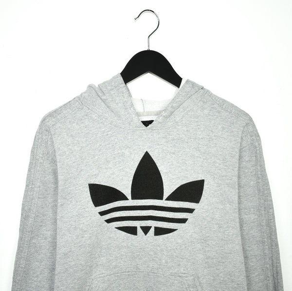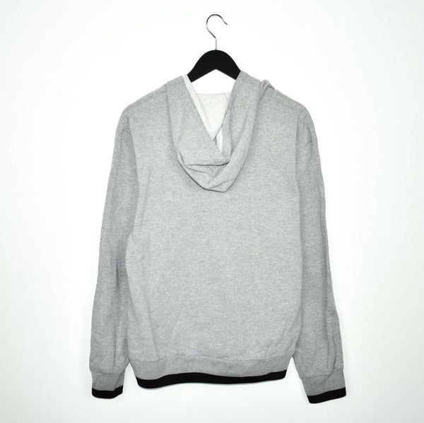 Adidas hoodie pullover sweatshirt windbreaker fleece track jacket in grey and black. Unisex. Same/Next day postage, instant buy is on! Good condition. Faults are shown in the picture: missing pull-strings. Has a logo on the front. We recommend M.
