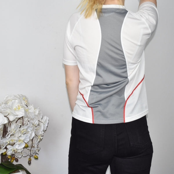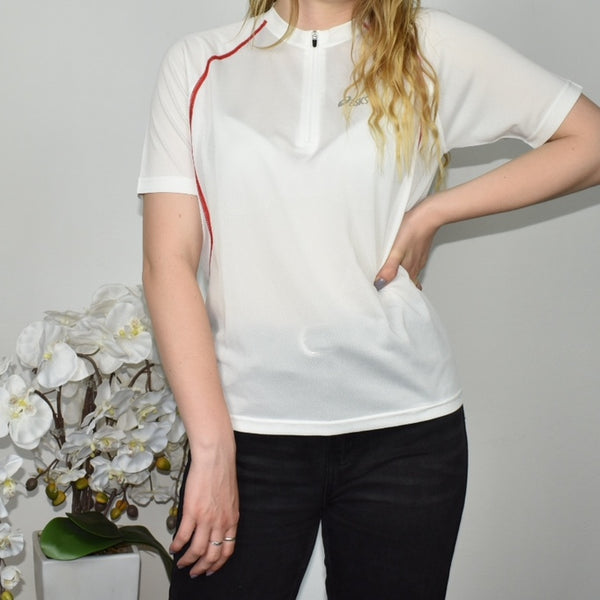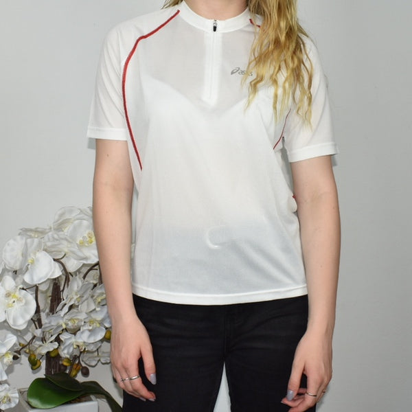 Asics quarter zip up t-shirt top sweatshirt jumper sweater pullover in white. Has a collar 💗 Great condition. Label says S, we recommend S. Model is 168cm/5’6. Free shipping on bundles.