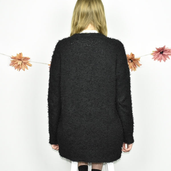 Cute fuzzy Benetton cardigan sweater jumper pullover in black. Cute.💗 Great condition. Label says M, we recommend M. Model is 164cm/5’4. Free shipping on bundles.