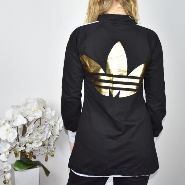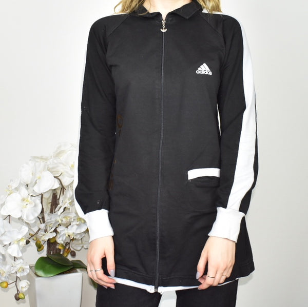 Cute sporty Adidas long zip up track jacket hoodie jumper sweater top cardigan pullover in black. Has a logo on the front and back.💗 Great condition. Label says XL, we recommend M. Model is 168cm/5’6. Free shipping on bundles.