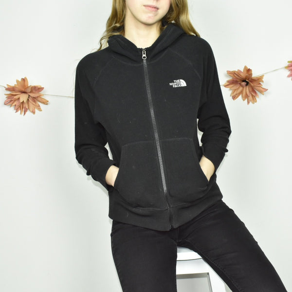 Cute sporty The North Face hoodie jumper sweater top cardigan pullover in black. Soft material Has some stains on the sleeve as shown in the picture. Label says M(ages 10-12), we recommend XS. Model is 164cm/54. Free shipping on bundles.