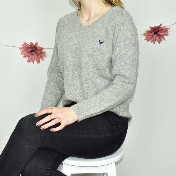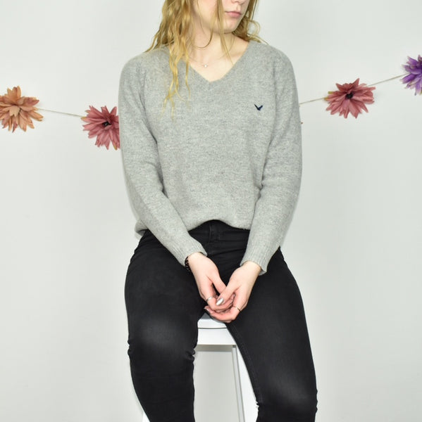 Cute warm Lambswool V-neck jumper sweater top cardigan pullover in grey. 80% lana wool. 20% poliammide. 💗 Great condition. Label says M, we recommend M. Model is 168cm/5’6. Free shipping on bundles.