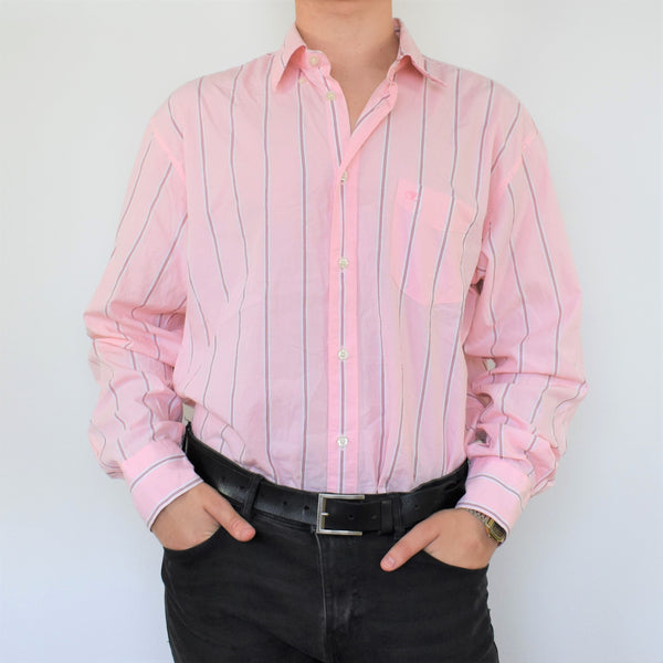 ✈️🚚WORLDWIDE POSTAGE❗️CHECK ALL PICS FOR MEASUREMENTS🌊PINK STRIPED TOM TAILOR COLLAR SHIRT