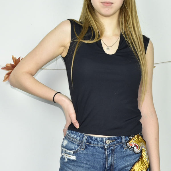 Simple cami top t-shirt sleeveless crop top in black. Everyday wear. 💗 Great condition. We recommend S. Model is 164cm/5’4. Free shipping on bundles.