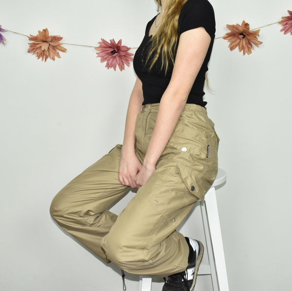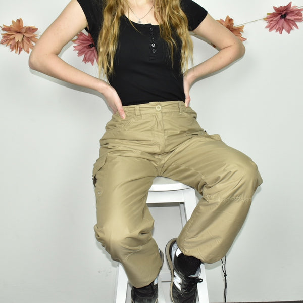 Super cool Camargue cargo trousers pants jeans joggers in light khaki. Edgy 💗. Great condition. Label says S, we recommend S. Model is 164cm/5’4. The pants are adjusted for pictures! For real size follow the measurements: