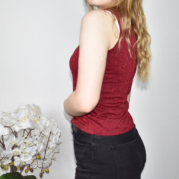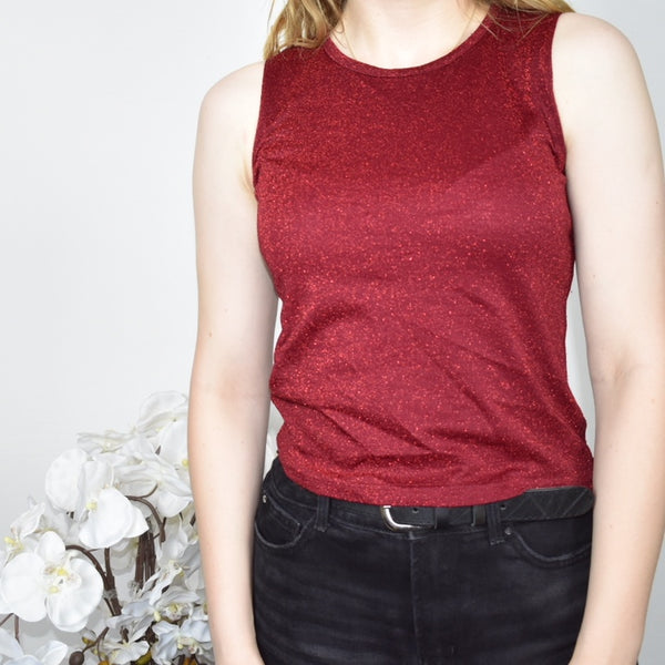 Super cute BLUE. sleeveless top t-shirt blouse without sleeves in shiny red. Inlove with this one. 💗 Great condition. We recommend S. Model is 168cm/5’6. Free shipping on bundles.