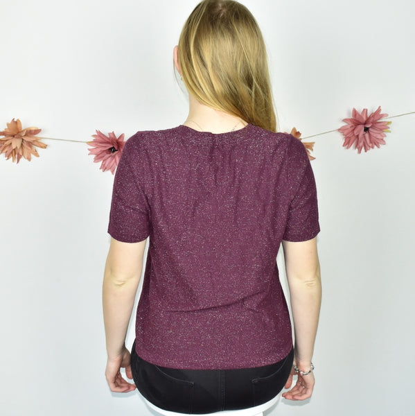 Super cute Twiggy top t-shirt crop top in purple. Glittery. 💗 Great condition. We recommend M. Model is 168cm/5’6. Free shipping on bundles.