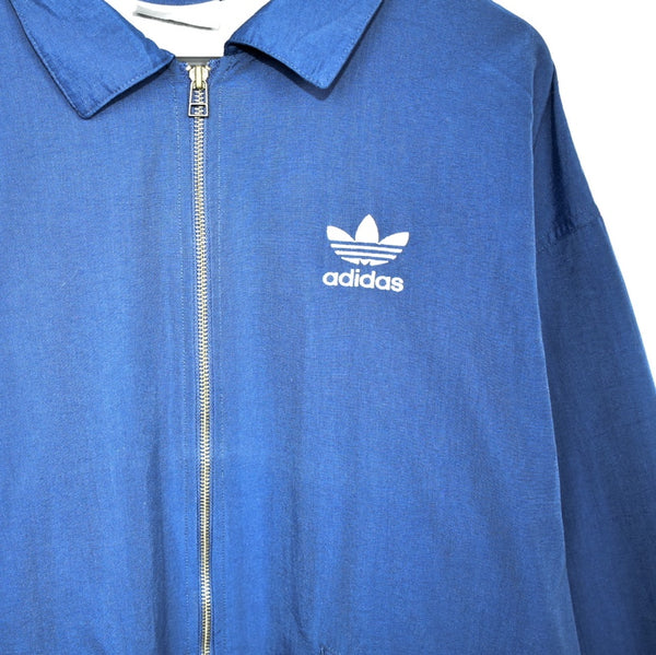 Vintage Adidas denim zip up jacket windbreaker tracksuit track jacket trackie sweater jumper sweatshirt pullover long sleeve in dark blue. Unisex. Same/Next day UK postage, instant buy is on! Great condition. Features Adidas logo on the front. Label says L we recommend L/XL.