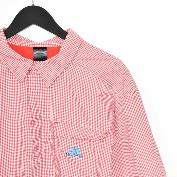 Vintage Adidas formal button uppolo shirt short sleeve top in red and white. Unisex. Same/Next day UK postage, instant buy is on! Great condition. Features Adidas logo on the front. Label says XL, we recommend L.