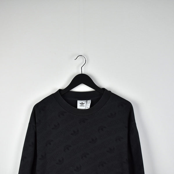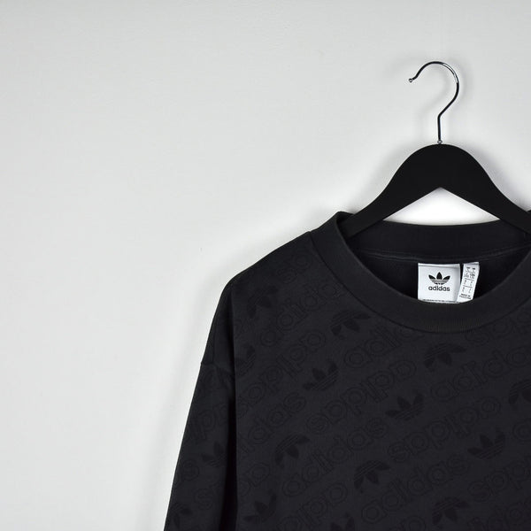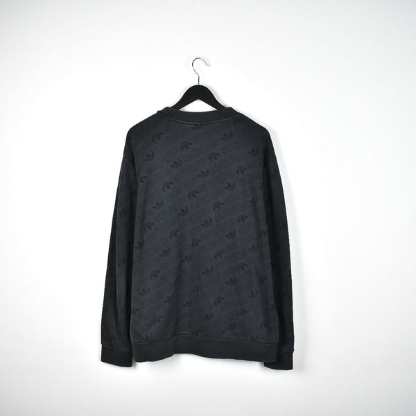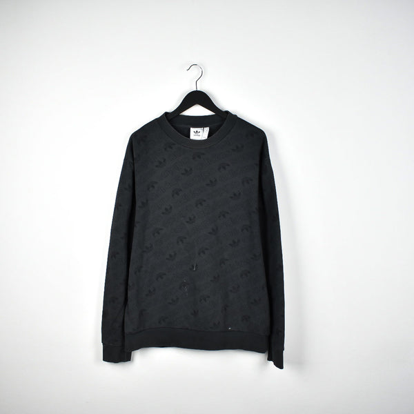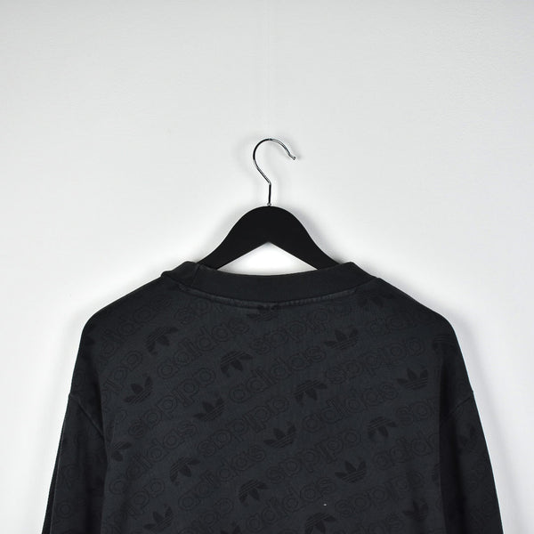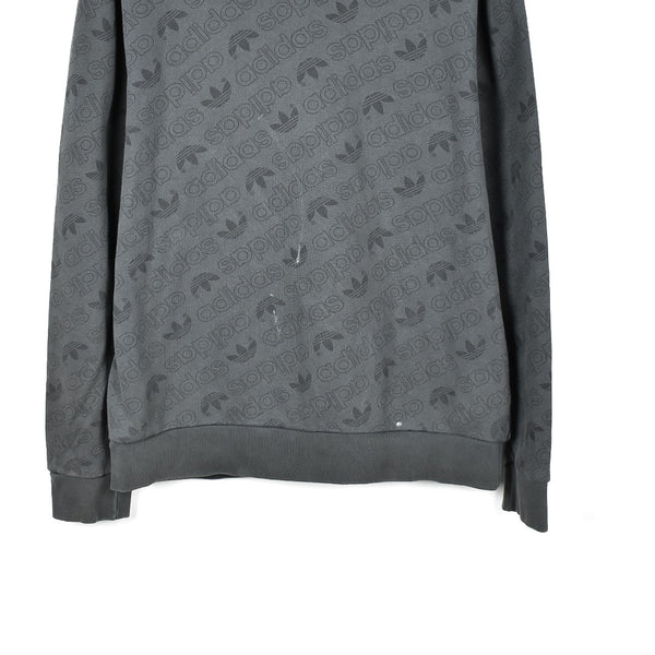 Vintage Adidas jumper pullover sweatshirt windbreaker fleece track jacket in dark grey. Unisex. Same/Next day postage, instant buy is on! Good condition. Faults are shown in the picture, mild staining on the back. Has logo print all over. Label says L, we recommend L. Measurements: * Pit to pit - 20in/51cm * Top to bottom - 26in/67cm * Pit to cuff - 19in/50cm Please message with any questions AZ8