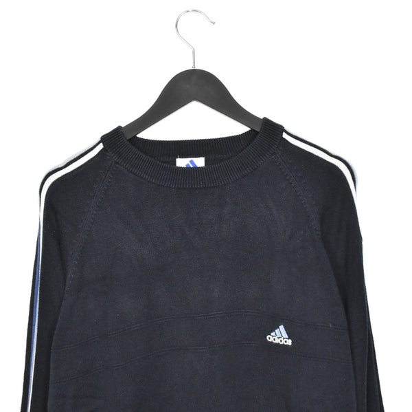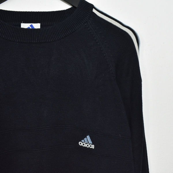 Vintage Adidas jumper sweater pullover sweatshirt top in navy and light blue. Unisex. Same/Next day postage, instant buy is on! Very good condition. Has a cool design on the front. Label says M, we recommend M.