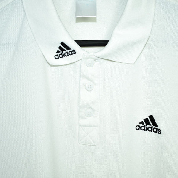 Vintage Adidas polo shirt tee blouse top in white. Unisex. Same/Next day UK postage, instant buy is on! Size M/L best fitting. Great condition. Has a black Adidas logo on the front. Measurements: