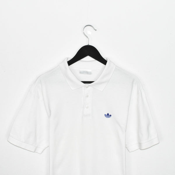 Vintage Adidas polo shirt tee blouse top in white. Unisex. Same/Next day UK postage, instant buy is on! Label says L, we recommend L. Great condition. Has a logo on the front. Measurements: