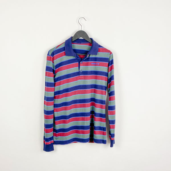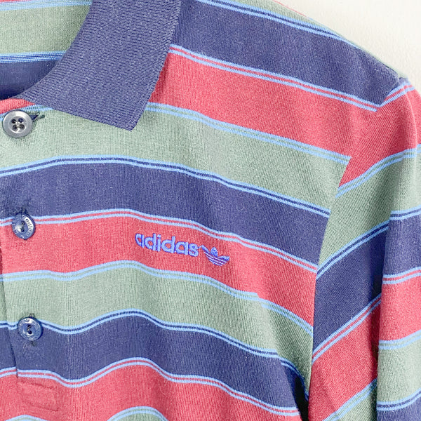 Vintage Adidas polo top long sleeve jumper sweater polo shirt pullover sweatshirt colourful top in blue, red and army green. Unisex. Same/Next day postage, instant buy is on! Very good condition. Has a logo on the front. Label says M, we recommend M. Measurements: * Pit to pit - 18in/47cm * Top to bottom - 24in/62cm * Pit to cuff - 18in/48cm Please message with any questions AT6