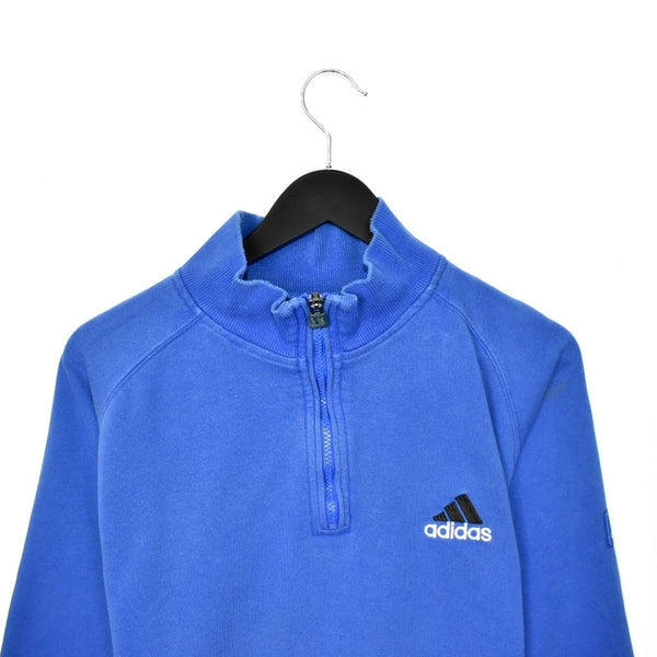 Vintage Adidas quarter zip up jumper hoodie pullover sweatshirt windbreaker track jacket in blue. Unisex. Same/Next day postage, instant buy is on! Very good condition. Has a logo on the front. We recommend L.