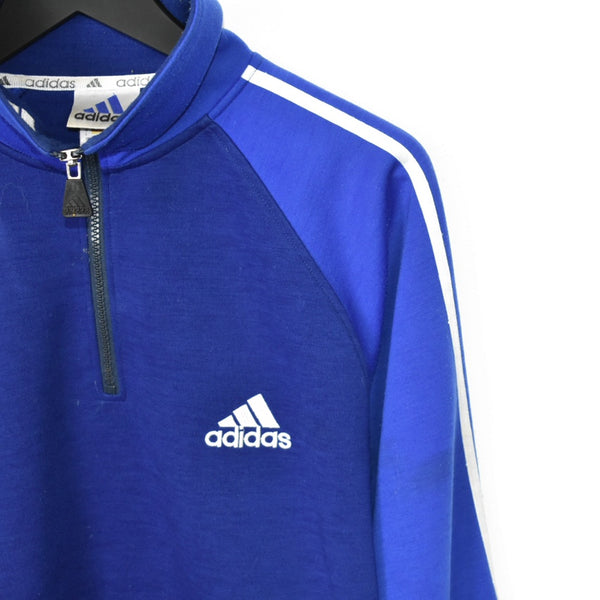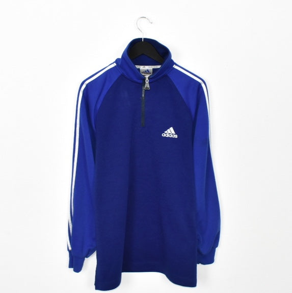 Vintage Adidas quarter zip up sweatshirt longsleeve tee pullover jumper in blue. Unisex. Same/Next day postage, instant buy is on! Great condition. Has a logo on the front and back. Label says L, we recommend L.