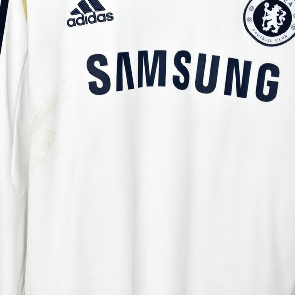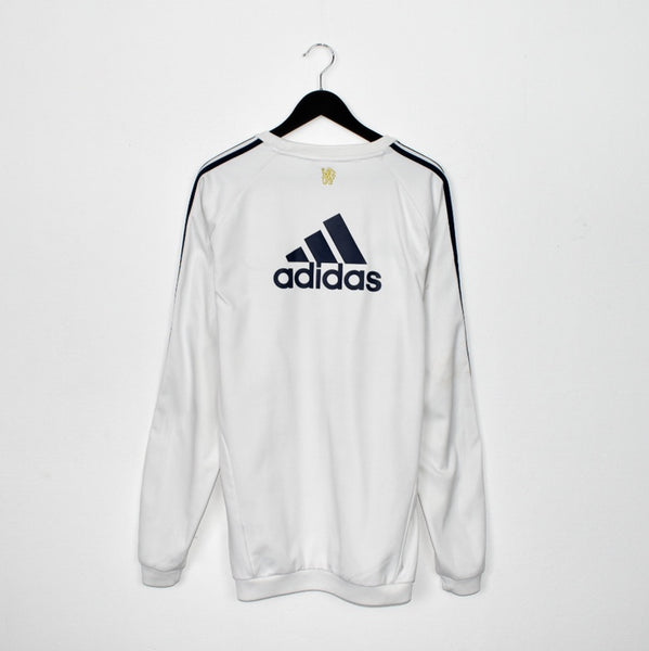 Vintage Adidas Samsung longsleeve tee pullover sweatshirt in white. Unisex in dark blue. Same/Next day postage, instant buy is on! Has a logo on the front and back. Good condition. Has stains which can be seen in the pictures. Label says L, we recommend L.