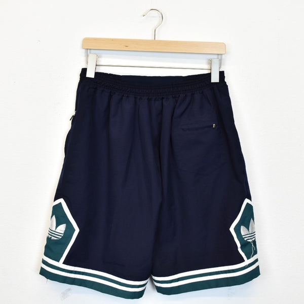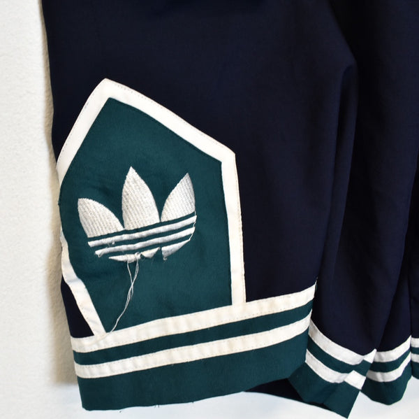 Vintage Adidas shorts joggers trousers track pants bottoms in dark blue and green. Unisex. Same/Next day postage, instant buy is on! Pretty great condition. Fault can be seen in the picture. Has a logo on the front and sides. We recommend M.