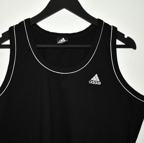 Vintage Adidas sleeveless t-shirt top blouse tee in black and white. Unisex. Same/Next day postage, instant buy is on! Very good condition. Has a logo on the front. We recommend L.