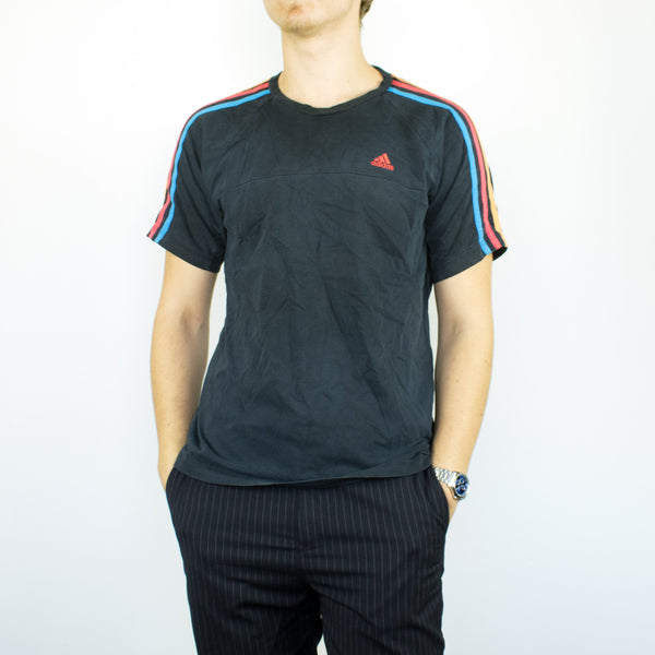 Vintage Adidas t-shirt top blouse tee in black. Unisex. Same/Next day postage, instant buy is on! Very good condition. Has a small logo on the front. Size M/L best fitting. Model is 181cm/5ft11. Please message with any questions 👌