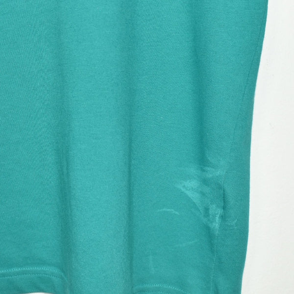 Vintage Adidas t-shirt top blouse tee in turquoise. Unisex. Same/Next day postage, instant buy is on! Has a logo on the front. Good condition. Faults are shown in the picture: staining on the front. Label says M(11-12y), we recommend XS.