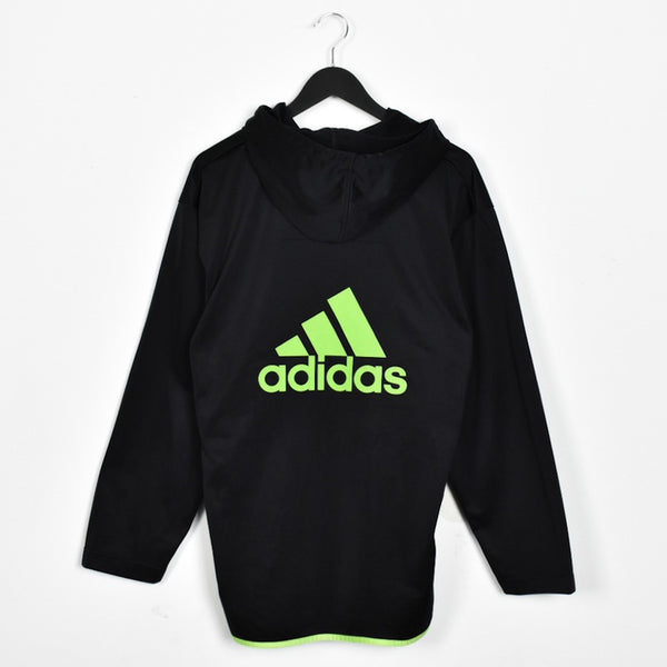 Vintage Adidas track jacket longsleeve tee pullover windbreaker sweatshirt in black and neon green. Unisex. Same/Next day postage, instant buy is on! Great condition. Has a logo on the front and back. Label says S, we recommend S.
