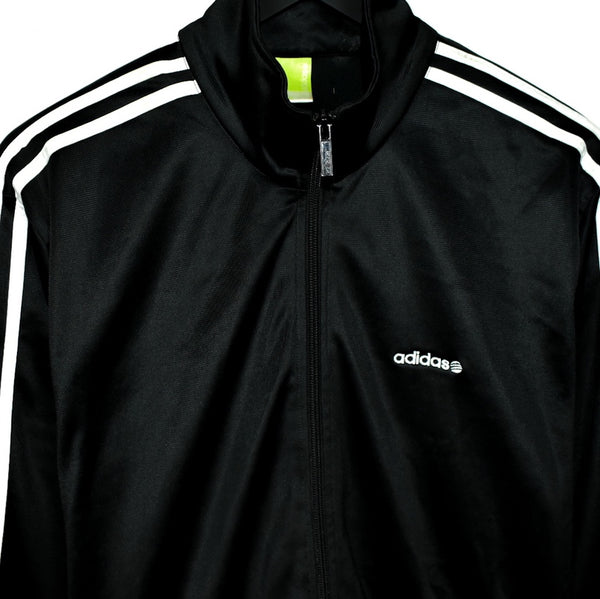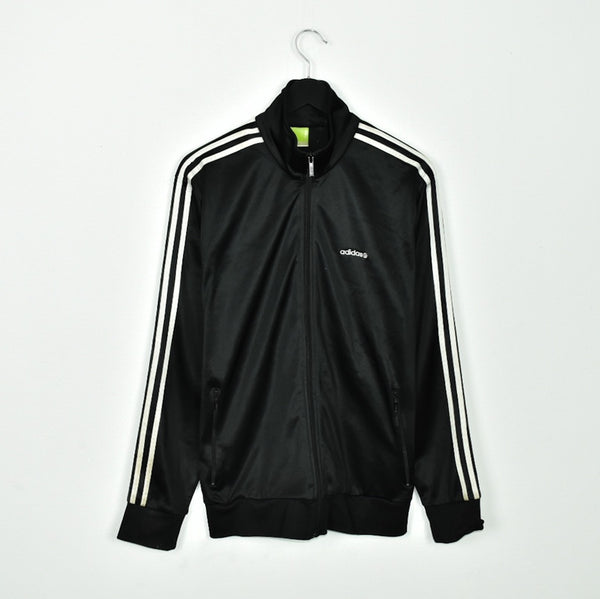 Vintage Adidas track jacket windbreaker fleece longsleeve tee pullover sweatshirt jumper in black and white. Unisex. Same/Next day postage, instant buy is on! Good condition. Has a spellout logo on the front and back. Label says L, we recommend M.