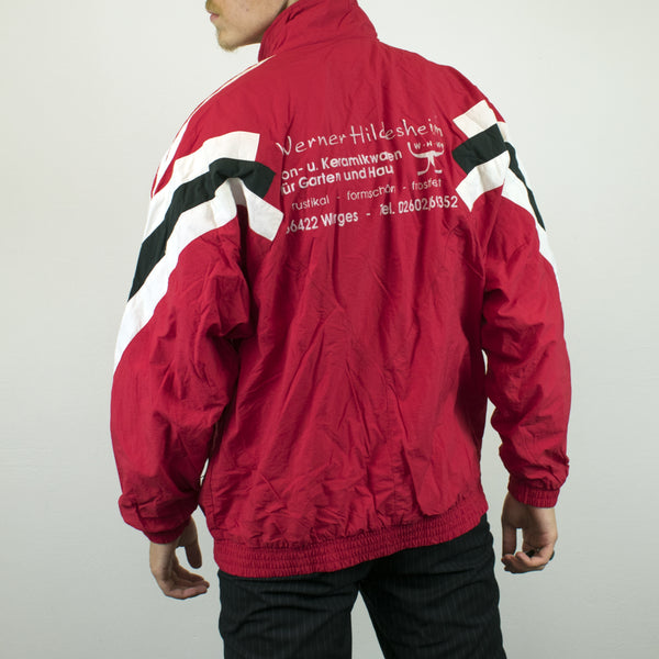 Vintage Adidas tracksuit track jacket fleece windbreaker in red, white and black. Unisex. Same/Next day UK postage, instant buy is on! Very good condition. Has a spellout on the front. Size L best fitting. Model is 181cm/5ft11. Please message with any questions 👌
