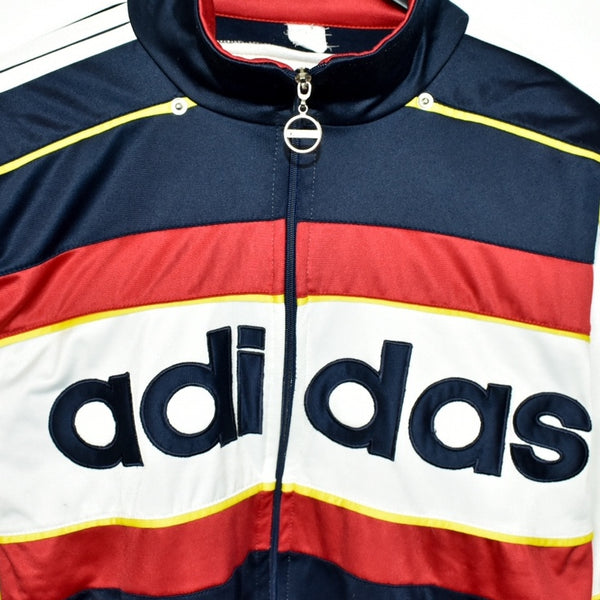 Vintage Adidas tracksuit trackie jacket zip up sweater dark blue red and white. Unisex. Same/Next day UK postage, instant buy is on! Very good condition. Features an adidas logo on the front and zipper. We recommend M.