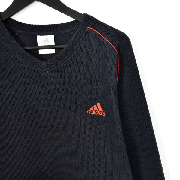 Vintage Adidas V neck sweatshirt pullover hoodie windbreaker fleece track jacket in dark blue and red. Unisex. Same/Next day postage, instant buy is on! Very good condition. Has a logo on the front. Label says L, we recommend L.