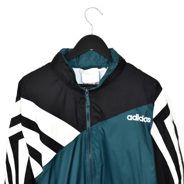 Vintage Adidas windbreaker fleece track jacket bomber jacket in black, green and white. Unisex. Same/Next day postage, instant buy is on! Great condition. Has a logo on the front. Label says L, we recommend XL.