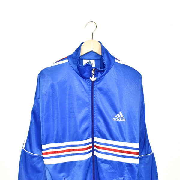 Vintage Adidas windbreaker fleece track jacket bomber jacket in blue. Unisex. Same/Next day postage, instant buy is on! Very good condition. Has a logo on the front and back of the collar. We recommend L.