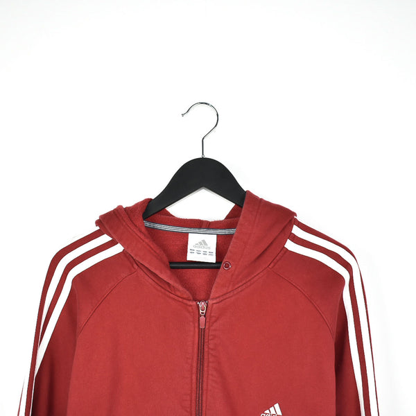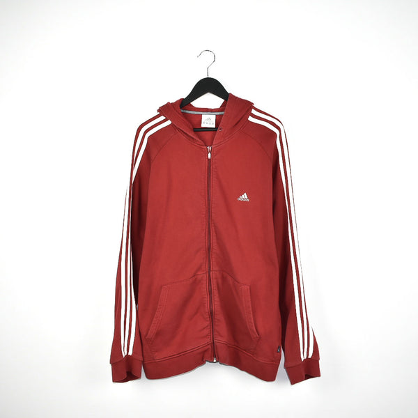Vintage Adidas zip up hoodie jacket tracksuit sweatshirt pullover jumper track jacket in burgundy. Unisex. Same/Next day UK postage, instant buy is on! Great condition. Has a logo on the front. Size XL best fitting. Measurements: * Pit to pit - 21in/53cm * Top to bottom - 29in/74cm * Pit to cuff - 21in/54cm Please message with any questions BC9