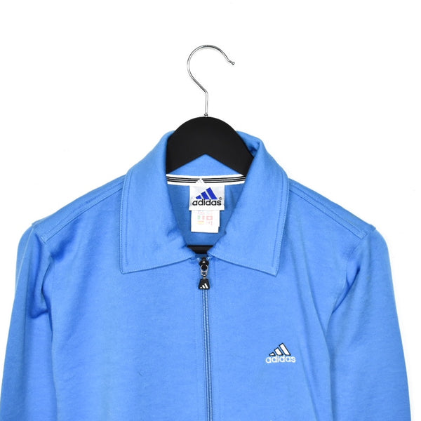 Vintage Adidas zip up jumper sweatshirt tracksuit track jacket trackie pullover long sleeve in light blue. Unisex. Same/Next day UK postage, instant buy is on! Great condition. Features Adidas logo on the front. Label says M, we recommend S.