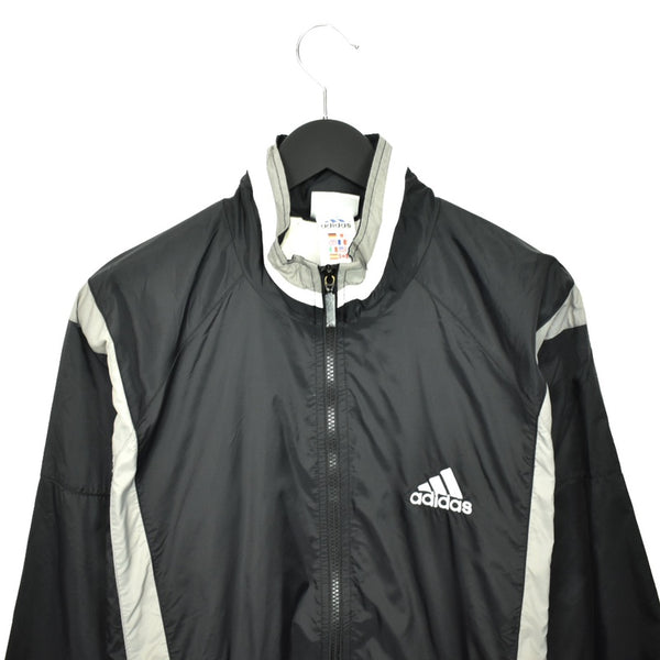Vintage Adidas zip up tracksuit track jacket trackie sweater jumper sweatshirt pullover long sleeve in black and white. Unisex. Same/Next day UK postage, instant buy is on! Good condition. Has some yellow stains on the inside of the jacket. Features Adidas logo on the front. We recommend M.