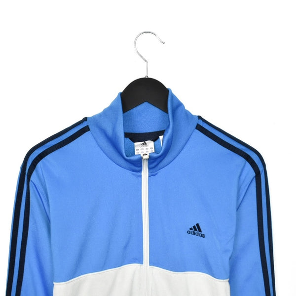Vintage Adidas zip up tracksuit track jacket trackie sweater windbreaker jumper sweatshirt pullover long sleeve in blue and white. Unisex. Same/Next day UK postage, instant buy is on! Great condition. Features Adidas logo on the front. Label says L, we recommend L.
