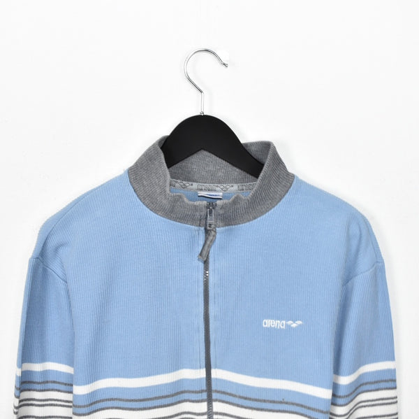Vintage arena zip up tracksuit track jacket trackie sweater jumper sweatshirt pullover long sleeve in grey and baby blue. Unisex. Same/Next day UK postage, instant buy is on! Great condition. Features a white arena logo on the front. We recommend M.