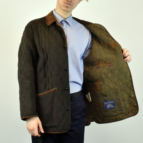 Vintage Burberry coat in dark green and brown. Unisex. Same/Next day postage, instant buy is on! Great condition. Size L best fitting. Model is 181cm/5ft11. Please message with any questions 👌