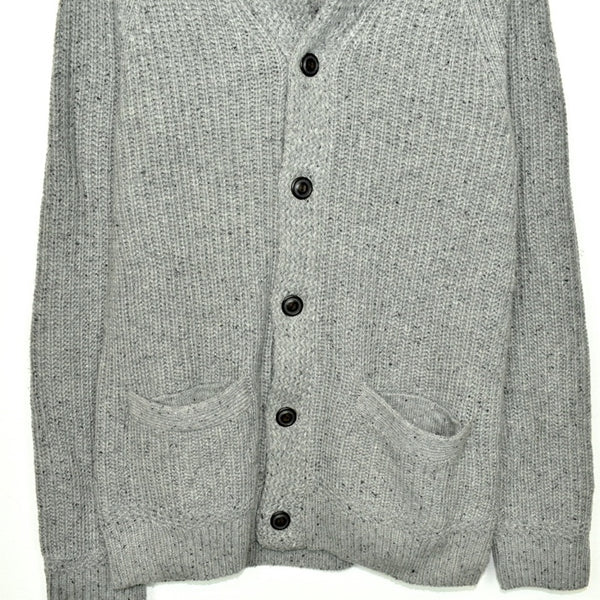 Vintage button up sweater sweatshirt jumper in brand h&m in grey. Unisex. Same/Next day UK postage, instant buy is on! Features elbow patches. 50% acrylic, 30% wool, 20% polyamide. Great condition. Will keep you warm in cold weather! Stretchy material. Label says M, we recommend M. Measurements: