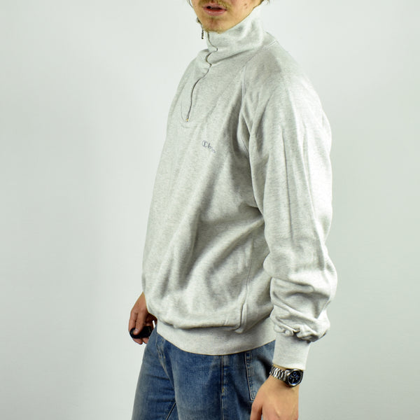 Vintage Champion half zip sweatshirt fleece jumper sweater pullover hoodie in gray. Unisex. Same/Next day postage, instant buy is on! Very good condition. Has a logo on the front. Size L best fitting. Model is 181cm/5ft11. Please message with any questions 👌