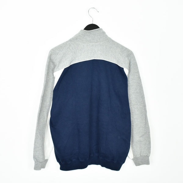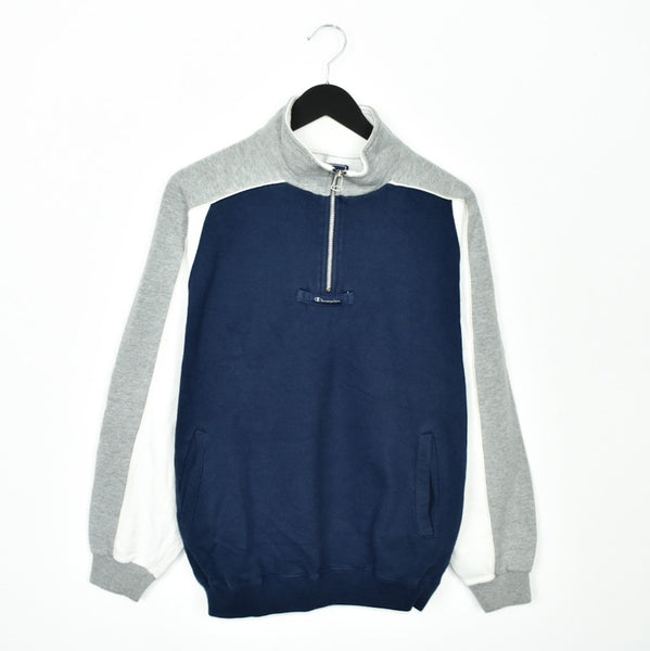 Vintage Champion quarter zip up collar jumper pullover sweatshirt t-shirt top tee in dark blue grey and whote. Unisex. Same/Next day postage, instant buy is on! Very good condition. Has a logo on the front. Label says M, we recommend M.