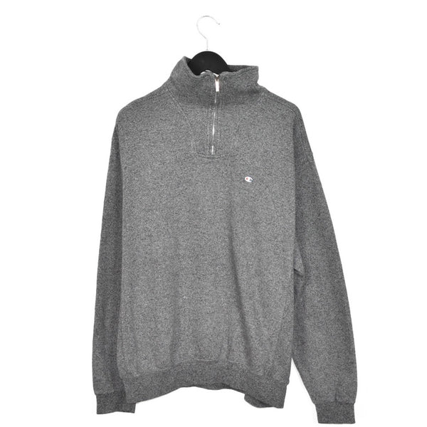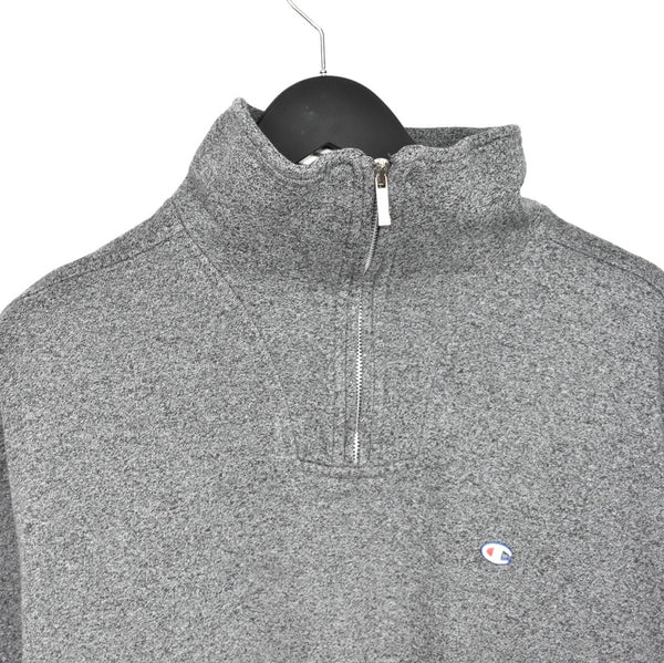 Vintage Champion quarter zip up sweater thin material longsleeve tee pullover sweatshirt in static grey. Unisex. Same/Next day postage, instant buy is on! Great condition. Has a logo on the front. Label says XL, we recommend XL.