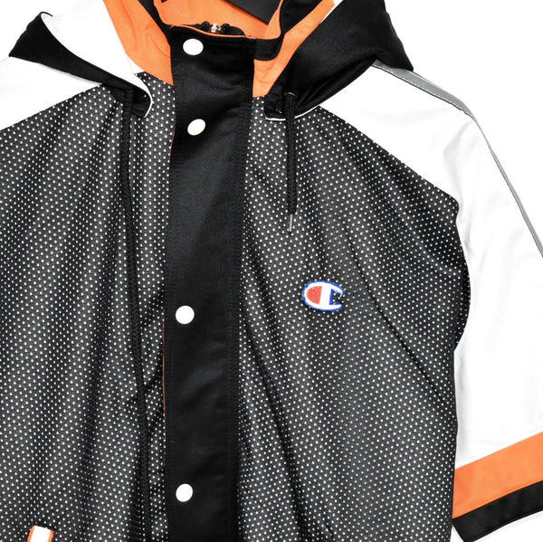 Vintage Champion sleeveless windbreaker fleece track jacket bomber jacket in black orange and white. Unisex. Same/Next day postage, instant buy is on! Good condition. Faults are shown in the picture: small stains on the whote part. Has a logo on the front. Label says XL, we recommend L.
