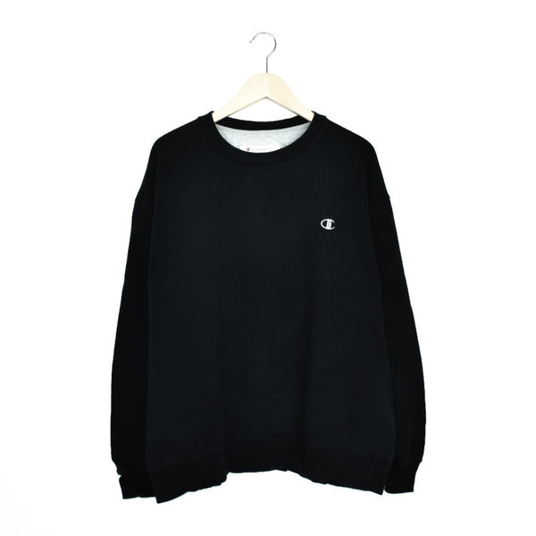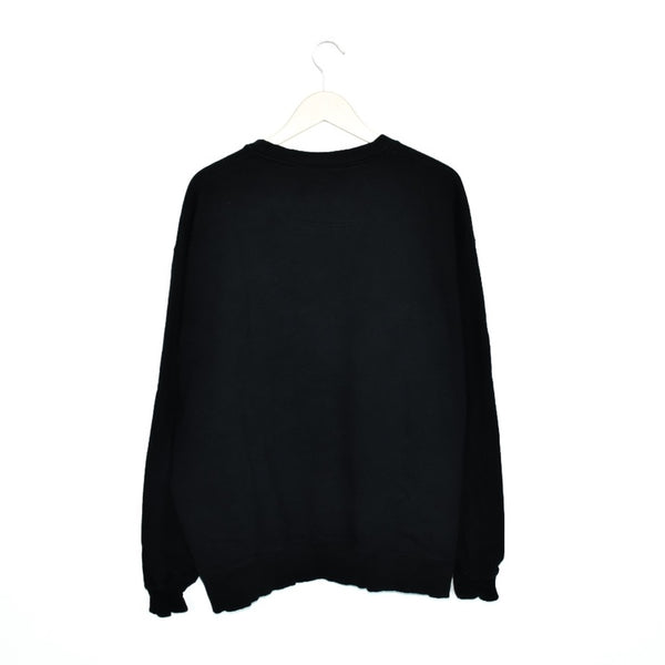 Vintage Champion sweatshirt jumper long sleeve tee pullover in black. Unisex. Same/Next day postage, instant buy is on! Pretty good condition. Faults are shown in the picture: a small rip on the back. Has a logo on the front. Label says XXL, we recommend XXL.