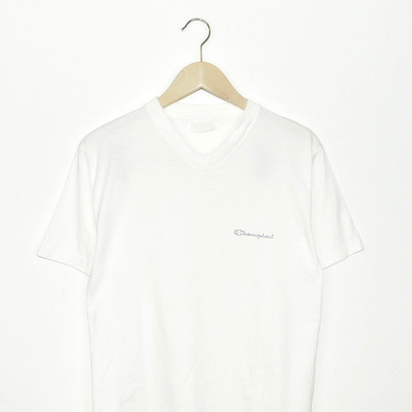 Vintage Champion V-neck t-shirt top blouse tee in white. Unisex. Same/Next day postage, instant buy is on! Very good condition. Has a logo on the front. We recommend M.