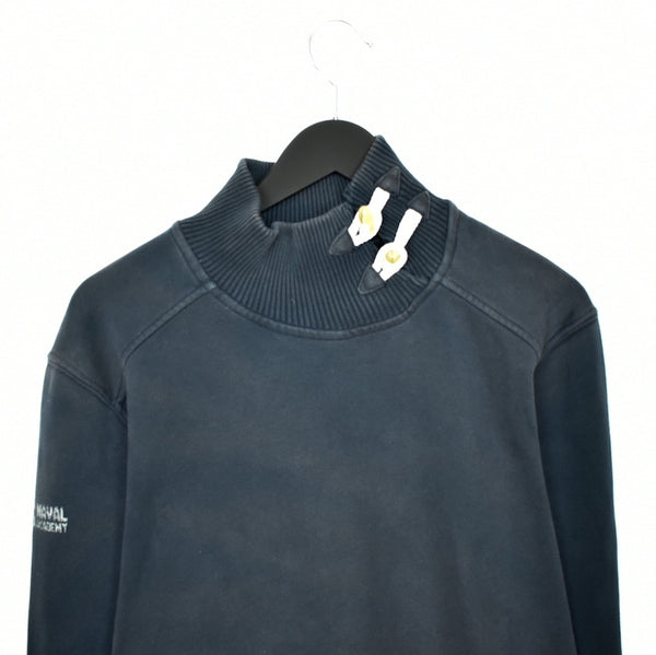 Vintage Champion x Naval Academy sweater jumper sweatshirt pullover long sleeve tracksuit trackie jacket in dark blue. Unisex. Same/Next day UK postage, instant buy is on! Good condition. Features logo on the front and sleeve. Tag says L, we recommend L.