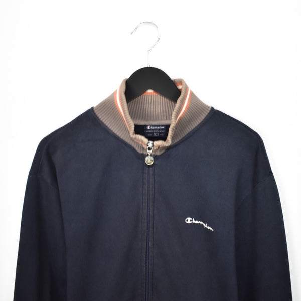 Vintage Champion zip up track jacket windbreaker sweatshirt longsleeve tee pullover jumper in dark blue and brown. Unisex. Same/Next day postage, instant buy is on! Great condition. Has a logo on the front. Label says L, we recommend L.