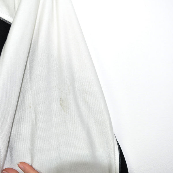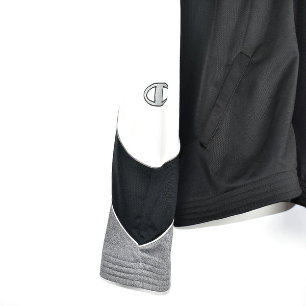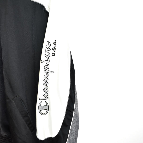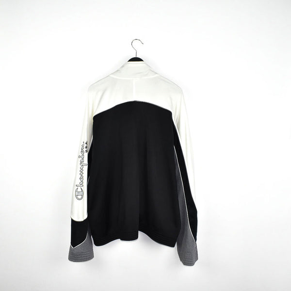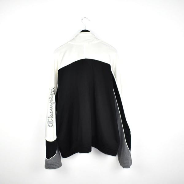 Vintage Champion zip up windbreaker tracksuit track jacket trackie sweater jumper sweatshirt pullover long sleeve in black, white and grey. Unisex. Same/Next day UK postage, instant buy is on! Good condition. Faults are shown in the picture: stained back. Features Champion logo on the sleeves. Label says XXL, we recommend XXL. Measurements: * Pit to pit - 23in/58cm * Top to bottom - 24in/61cm * Pit to cuff - 17in/44cm Please message with any questions BD6