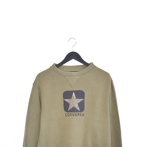 Vintage Converse longsleeve tee pullover jumper sweatshirt tracksuit hoodie in army green. Unisex. Same/Next day postage, instant buy is on! Has a logo on the front. Great condition. Label says L, we recommend L. Measurements: * Pit to pit - 19in/50cm * Top to bottom - 29in/75cm * Pit to cuff - 19in/50cm Please message with any questions AY4