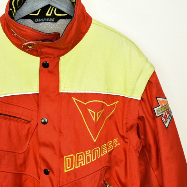 Vintage Dainese motor bomber jacket fleece windbreaker in neon red and yellow. Unisex. Same/Next day postage, instant buy is on! Has a logo on the chest. Great condition. We recommend M.